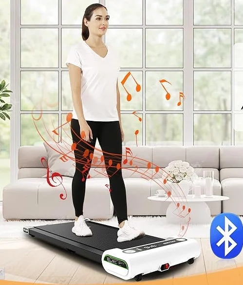 Description: One of the standout features of the AKLUER Walking Pad Treadmill Under Desk is its Bluetooth connectivity. Pair your smartphone or tablet with the treadmill's built-in speakers, and you'll have access to a world of entertainment and motivation. Listen to energizing playlists, catch up on podcasts, or follow along with virtual trainers, all while achieving your fitness goals.